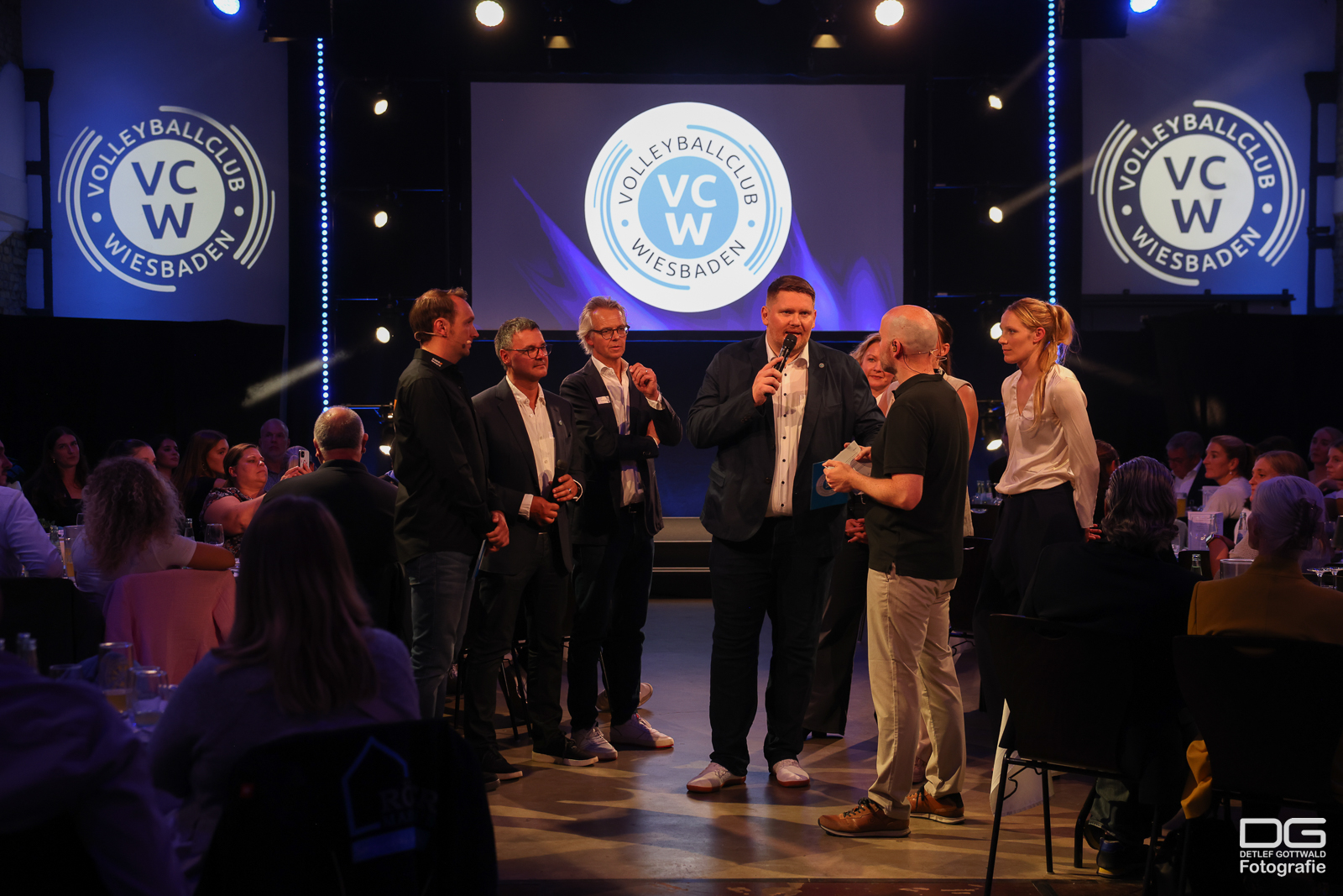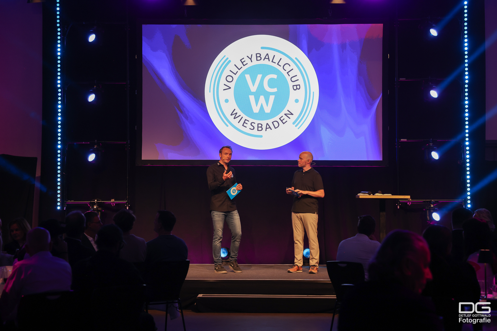 Durch den Abend führte erneut das sympathische Moderatoren-Team Micha Spannaus und Tobias Radloff. Neben vielen Partnern, Fans und Freunden des VCW wurden auch prominente Gäste aus Politik und Sport begrüßt. Kulinarisch verwöhnte die Hockenberger Mühle die rund 120 Gäste, während die Präsentation zusätzlich im Livestream übertragen wurde.